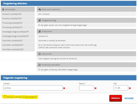 Deze informatie is later inzichtelijk in het verslag en natuurlijk ook direct inzichtelijk bij een volgende keer dat de betreffende patiënt besproken wordt.