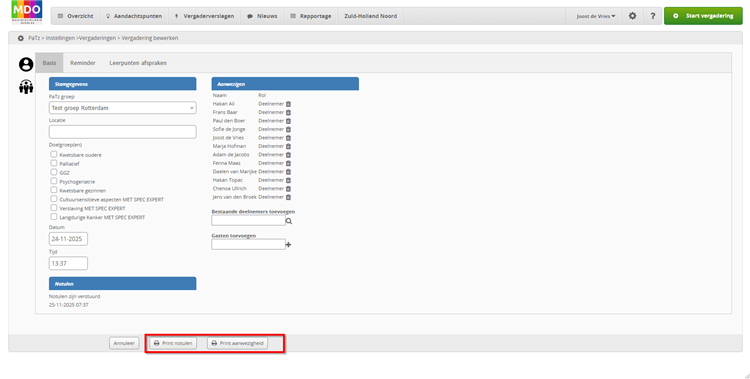 De deelnemers aan het MDO ontvangen vooraf automatisch een uitnodiging en na de bijeenkomst een link naar het verslag met de besproken patiënten en de geconstateerde knelpunten, leerpunten en scholingsbehoeften.
