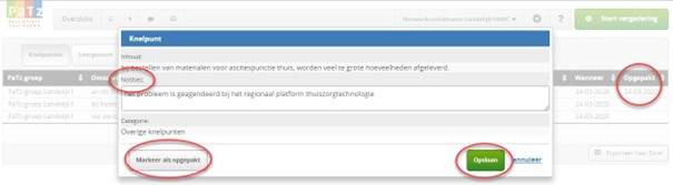 Als je het knelpunt actief heeft opgepakt, klik dan op de knop ‘Markeer als opgepakt’. In het overzicht komt dan achter het knelpunt een datum te staan onder ‘Opgepakt’.