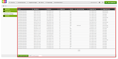 Zodra de actuele contact gegevens van MDO groep leden in de MDO Portal inzichtelijk zijn, kan de voorzitter of notulist de al geplande datums van de MDO overleggen (per doelgroep) invoeren.