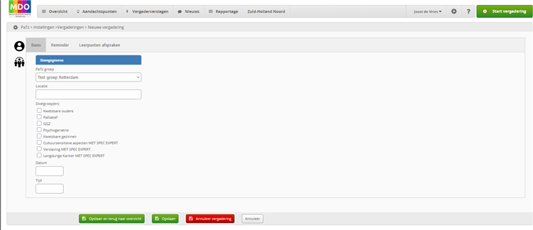 De deelnemers aan het MDO ontvangen vooraf automatisch een uitnodiging en na de bijeenkomst een link naar het verslag met de besproken patiënten en de geconstateerde knelpunten, leerpunten en scholingsbehoeften.