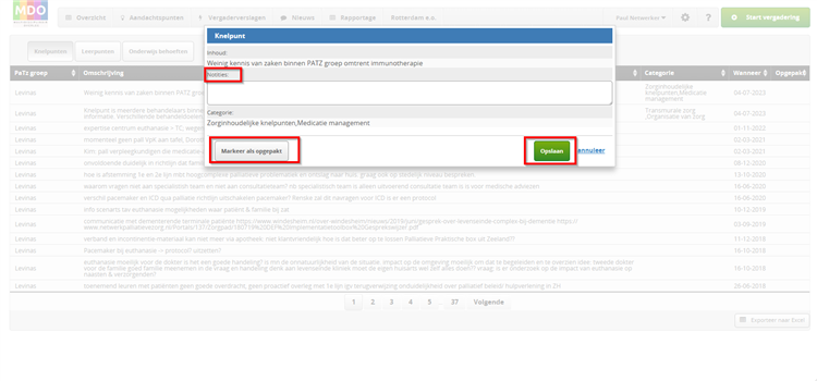 Deze informatie is later inzichtelijk in het verslag en natuurlijk ook direct inzichtelijk bij een volgende keer dat de betreffende patiënt besproken wordt.