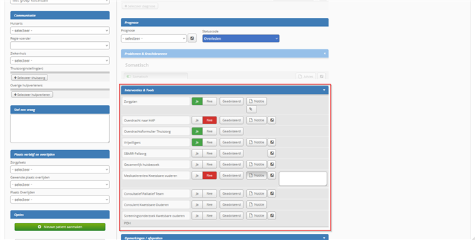 Zie verderop in de volgende velden voor detailgegevens patiënten en hulpverleners.